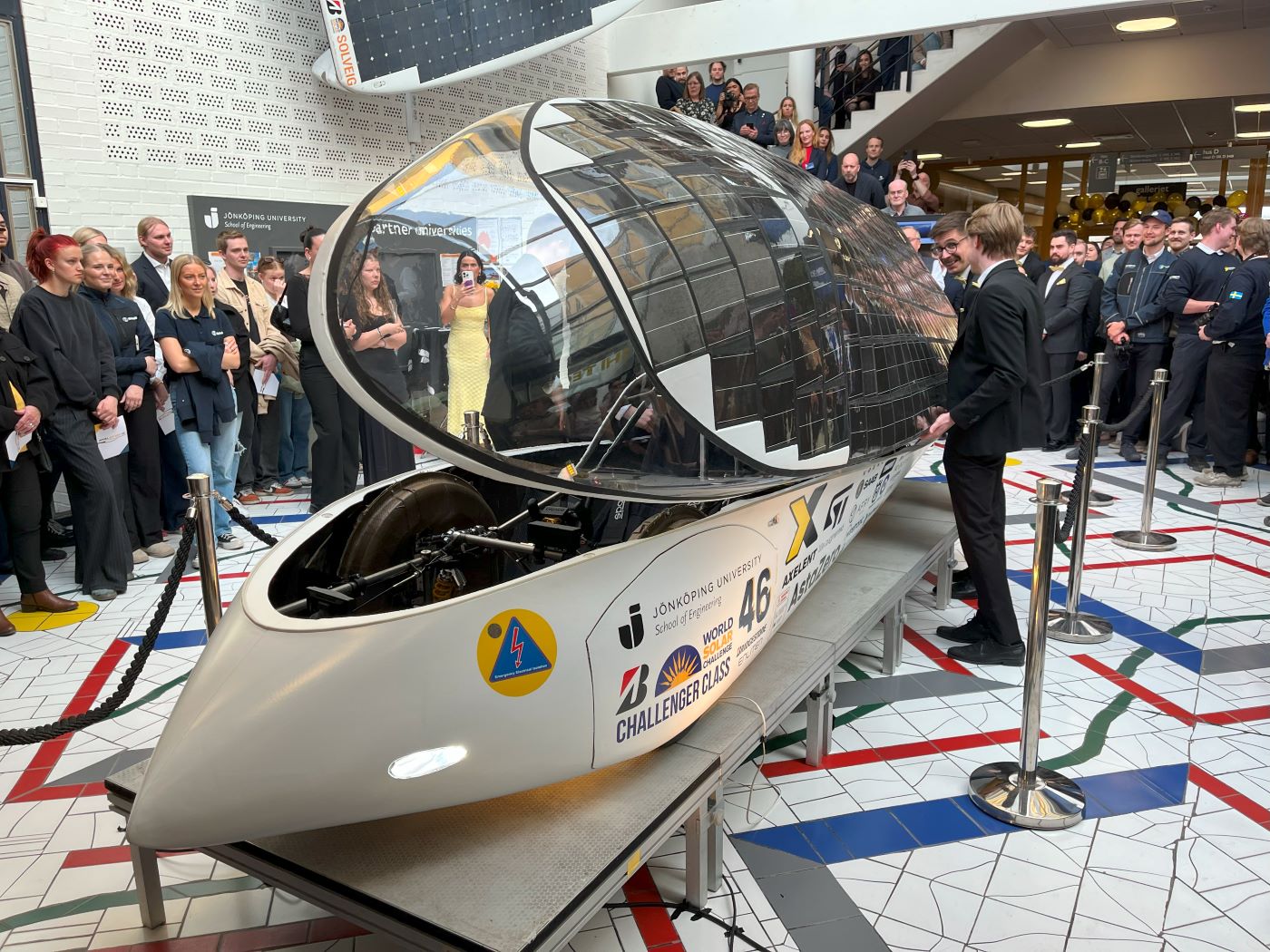 Twice as many solar panels and half as big battery. These are some of the new features of JU Solar Team's new solar car, which was unveiled in front of about 300 people at the School of Engineering (JTH) at Jönköping University (JU) on 10 April.