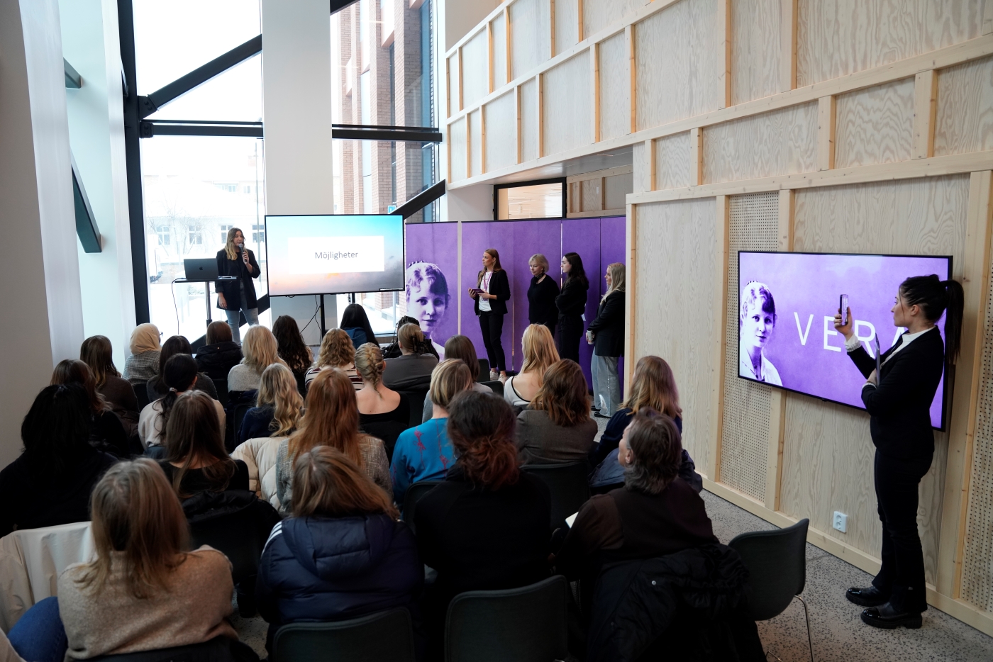 About 30 high school girls participated in VERA day, which was held at both JTH and Science Park Towers in Jönköping on 29 November. They got to listen to and meet young women who either study to or work as engineers, they visited the companies Coloreel and Fagerhult, and took part in tours of JTH and Science Park.