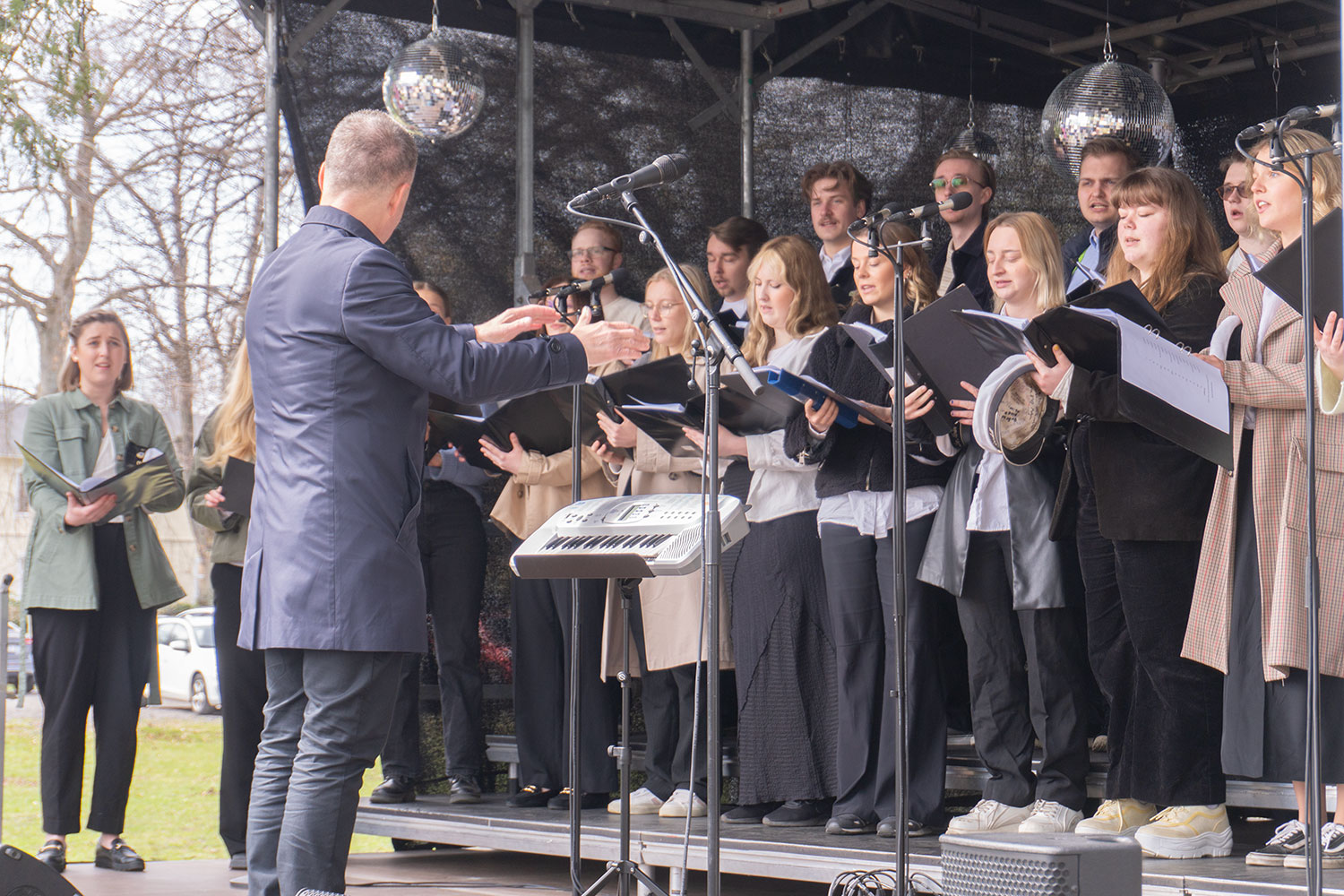 Jönköping University's academic choir, JUVE, led by conductor Dan Boberg, opened the celebrations with traditional songs like "Sköna maj," "Studentsången," and "Vintern rasat." Anders Jonzon, Director of Communications at JU, was the presenter, sharing details about Jönköping's overall tradition and talked about JU:s 30th anniversary as a foundation university.