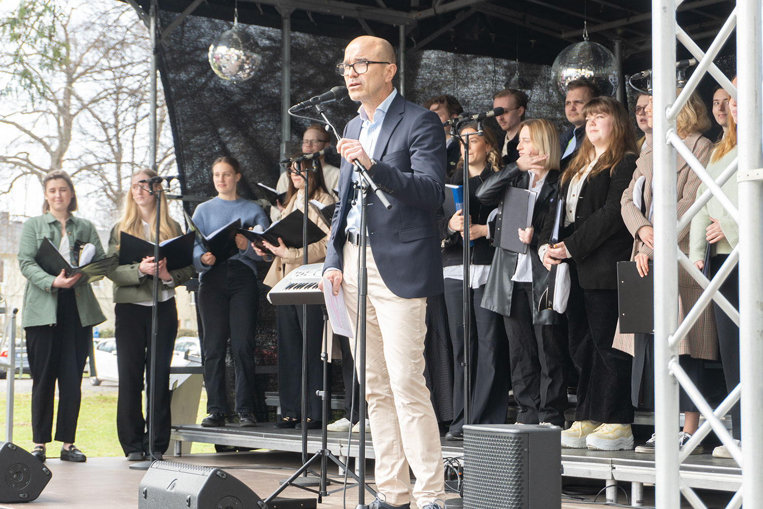 Måns Svensson, the newly appointed president of Jönköping University, delivered his first spring address to the cheering crowd. The celebrations concluded with more choir singing and a speech by Jose Alvarado, president of the Jönköping Student Union. Afterward, the student union hosted activities with competitions, music, and a DJ.