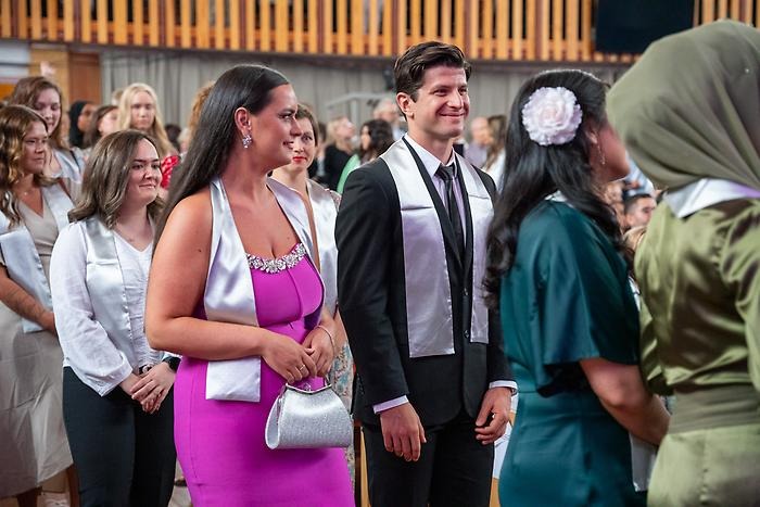 The spirits were high during HHJ's graduation ceremony in Pingstkyrkan. There was mingling, beautiful music, the awarding of scholarships, the Pedagogical Prize as well as speeches by Eleonor Fransson, Acting Dean at HHJ, and Gustav Sandberg, chair of the student association Hälsosektionen. The students went up on stage, programme by programme, to receive the cheers of the packed church.