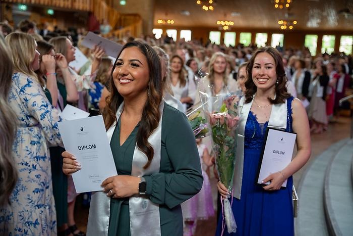 On 5 June, the School of Health and Welfare (HHJ), Jönköping University (JU), held its graduation ceremony at Pingstkyrkan. On 7 June, the School of Education and Communication (HLK), JU, held its graduation ceremony at Elmia. In total, around 700 students attended the two ceremonies.