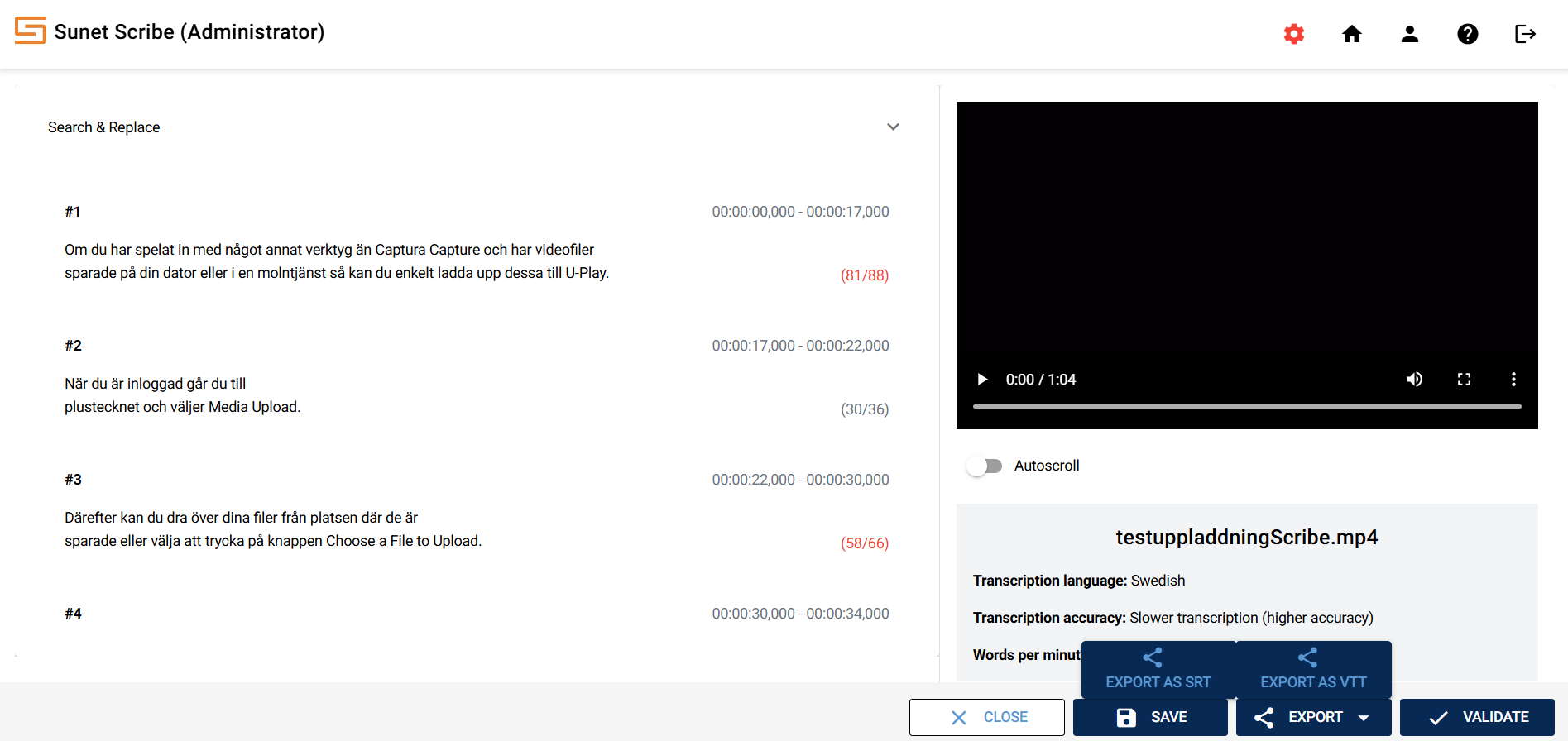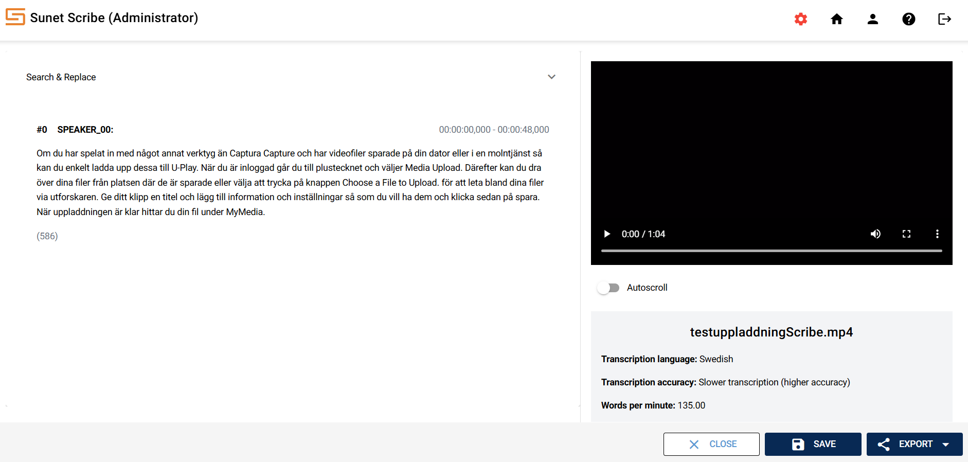 Sunet Scribe är den tjänst som på JU används för transkribering av forskningsdata samt för textning av videor i JU play.