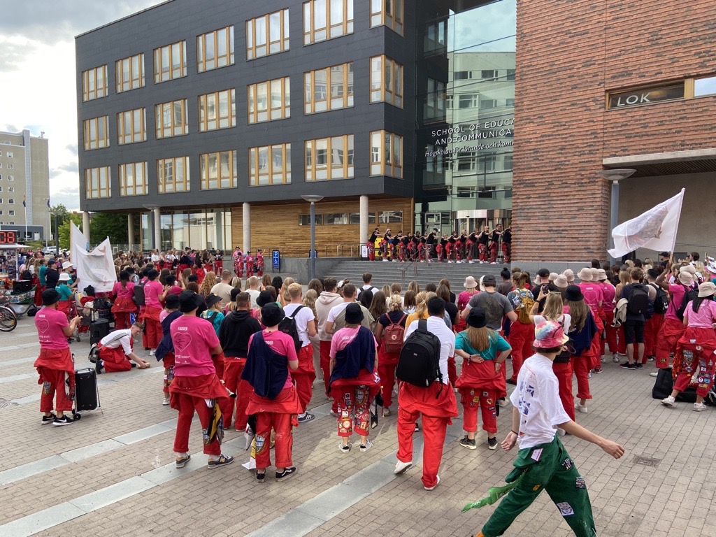 Blå: Media- och kommunikation-, Human Resources- och Internationellt Arbete-programmen på Högskolan för lärande och kommunikation (HLK).
