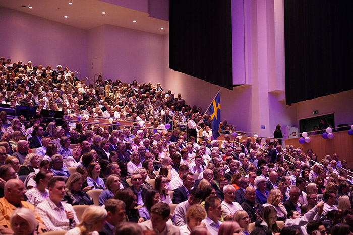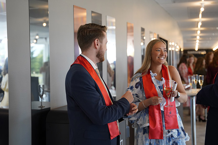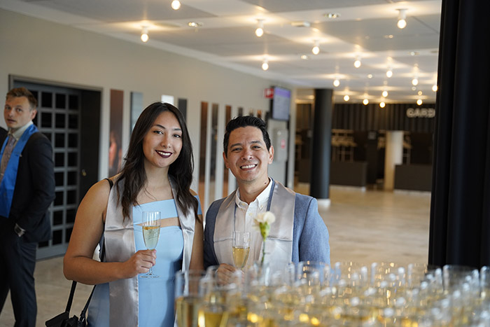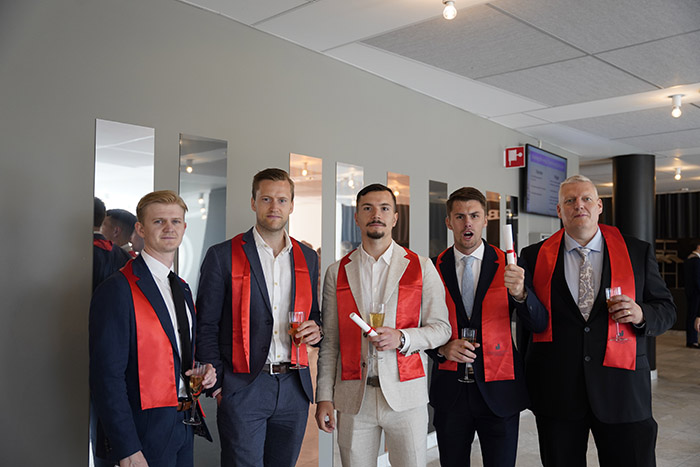 HLK:s ceremoni hölls för första gången på Elmia där de anhöriga fyllde Hammarskjöldsalen. Det var finklädda och glada studenter som bjöds på bubbel och tilltugg vid minglet innan ceremonin.