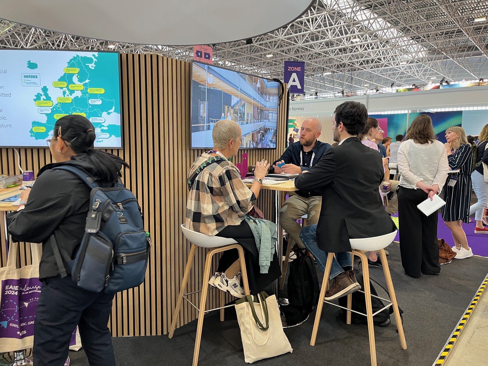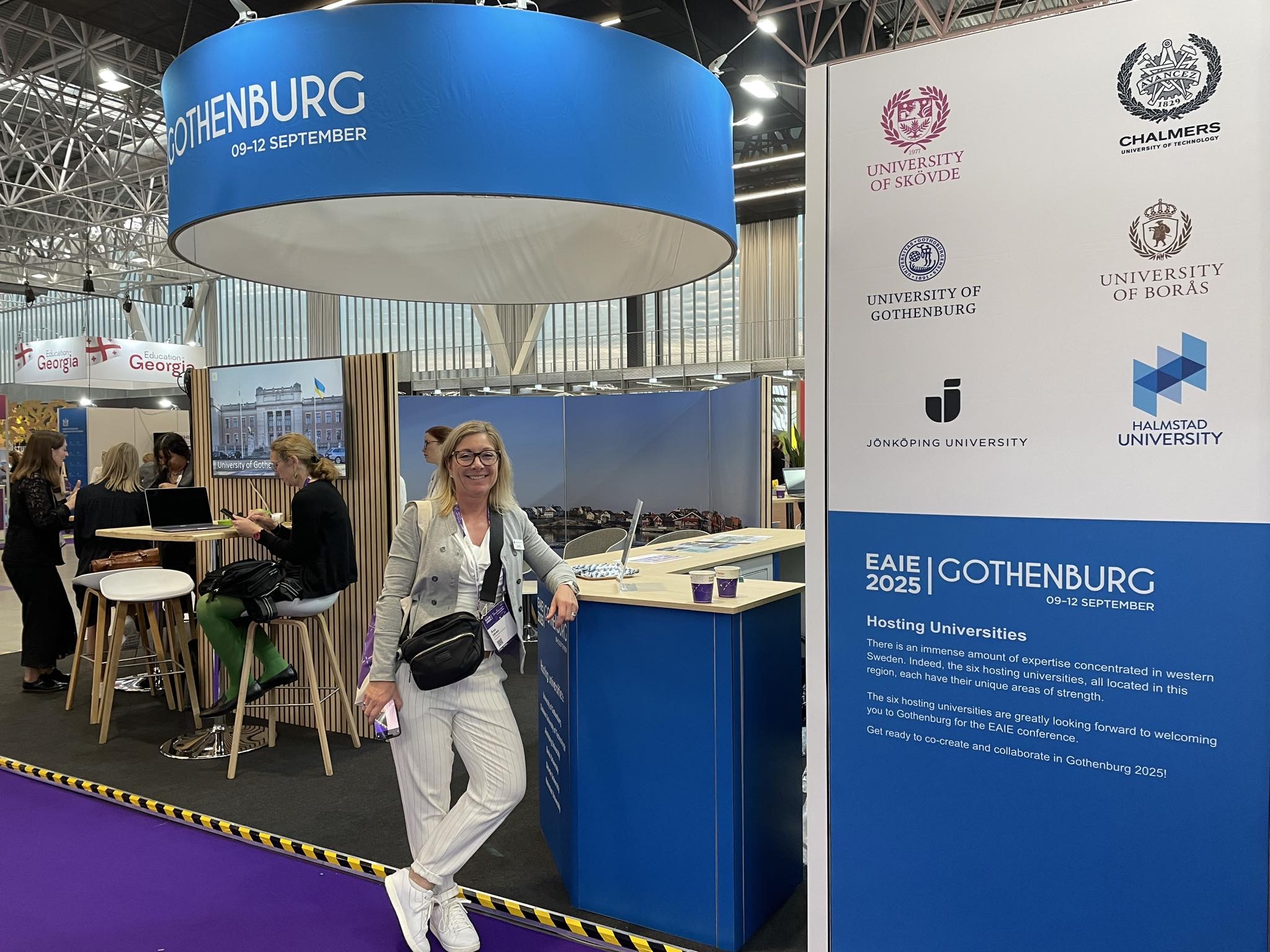 JU deltog som utställare tillsammans med fem andra lärosäten i Västsverige: Göteborgs universitet, Chalmers tekniska högskola, Högskolan i Borås, Högskolan i Halmstad och Högskolan i Skövde. Tillsammans är de värdar för EAIE 2025 som hålls i Göteborg och passade på att marknadsföra detta i Toulouse. JU lyfte även partnerdagen på JU den 9 september, då JU kommer att visa upp sitt campus.