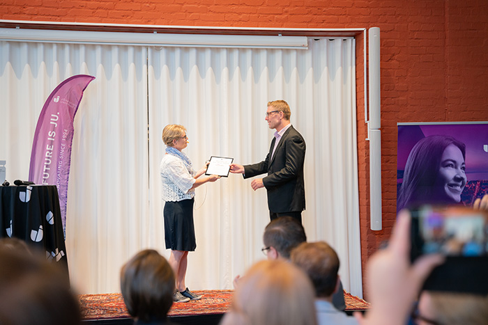 För fjärde året i rad har utmärkelsen Årets alumn delats ut av JU. Fackhögskolorna (Hälsohögskolan, Högskolan för lärande och kommunikation, Tekniska högskolan och Jönköping International Business School samt Jönköping University Enterprise) har alla enats om var sin alumn som nu även har fått ta emot sina priser. (se bildspel nedan).