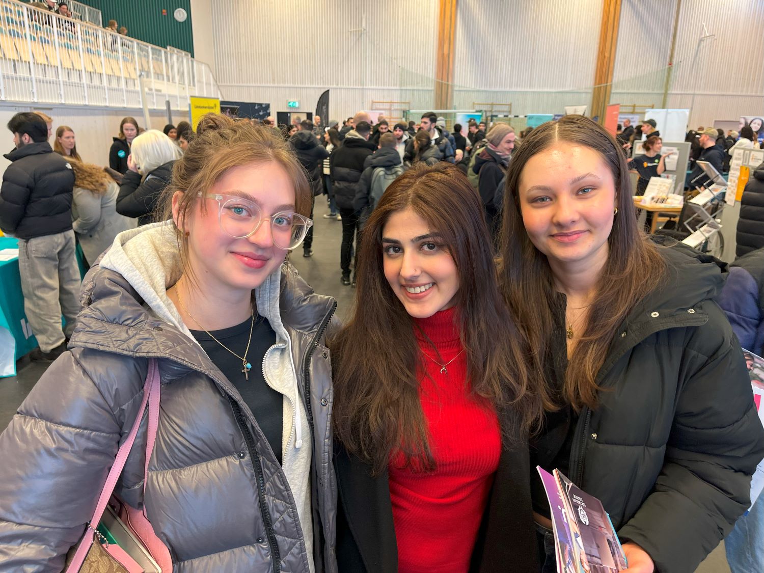 Eleverna som besökte mässan kom från gymnasieskolor i Jönköpings kommun. Två av dem var Wilma Lindgren och Tuva Sandqvist från Erik Dahlbergsgymnasiet i Jönköping, som är inne på att läsa civilekonomiprogrammet på Jönköping International Business School respektive sjuksköterskeprogrammet på Hälsohögskolan vid JU.