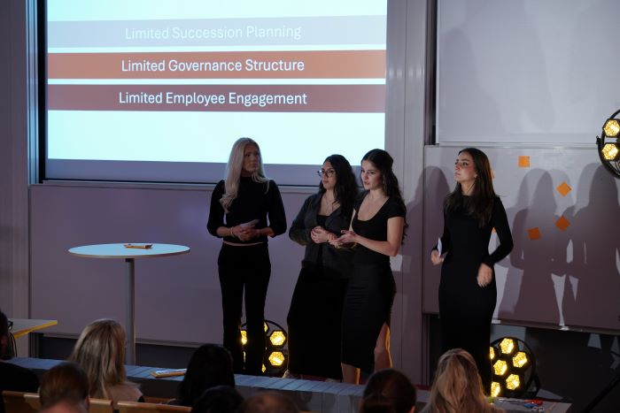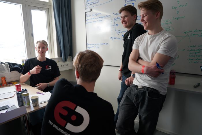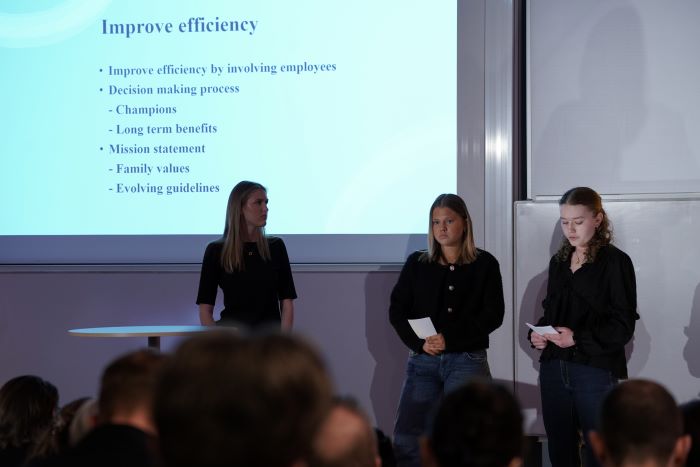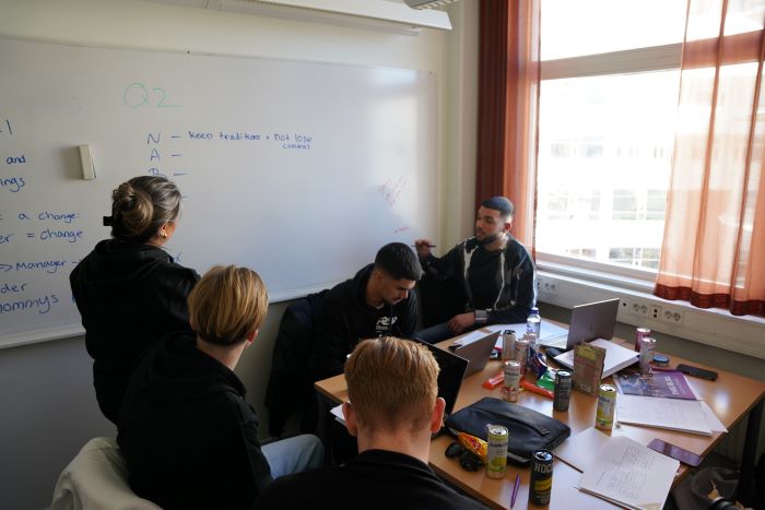 Under första dagens eftermiddag fick eleverna sitta med sina lag i grupprum och arbeta med lösningen på frågeställningen som alltså handlade om hur familjeföretaget Mårdskog & Lindkvist AB bäst skulle kunna säkra sin framtid under ett pågående generationsskifte.