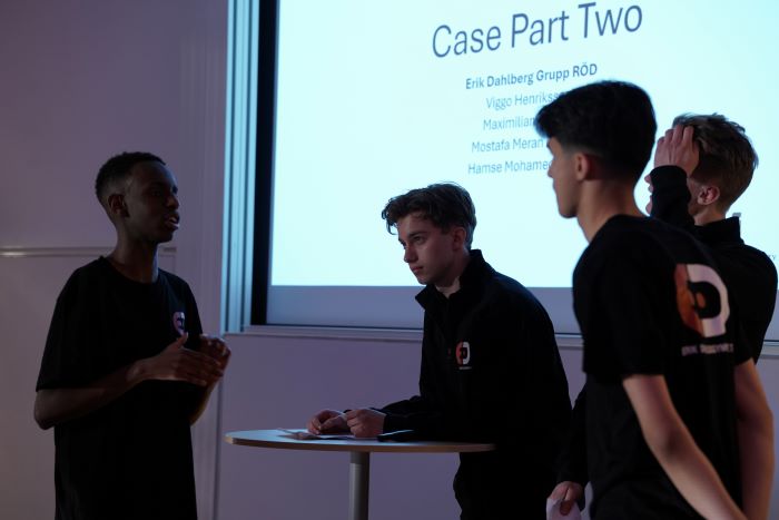 Inne på JIBS var stämningen förväntansfull när ett trettiotal elever från de tre gymnasieskolorna Per Brahe, Sanda och Erik Dahlberg hade samlats för att utveckla sina kunskaper inom entreprenörskap och företagsledning.