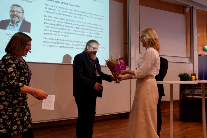 Under dagen annonserades också vinnaren av SPARK Award, som tilldelas ett av JTH:s forskningsprojekt som visat på stor samverkansskicklighet mellan akademi och företag. I år blev det projektet IFT@JKPG – Innovativ gjuteriteknik som tog hem priset. Läs mer om projektet. Länk till annan webbplats, öppnas i nytt fönster.