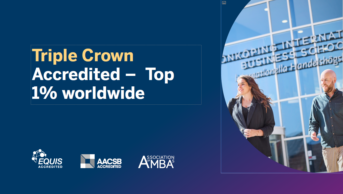 JIBS is among the top 1% of business schools globally. Thanks to Triple Crown accreditation (AACSB, EQUIS, AMBA) and strong international rankings, your degree stands out. Employers recognise its quality, and it opens doors to global opportunities.
